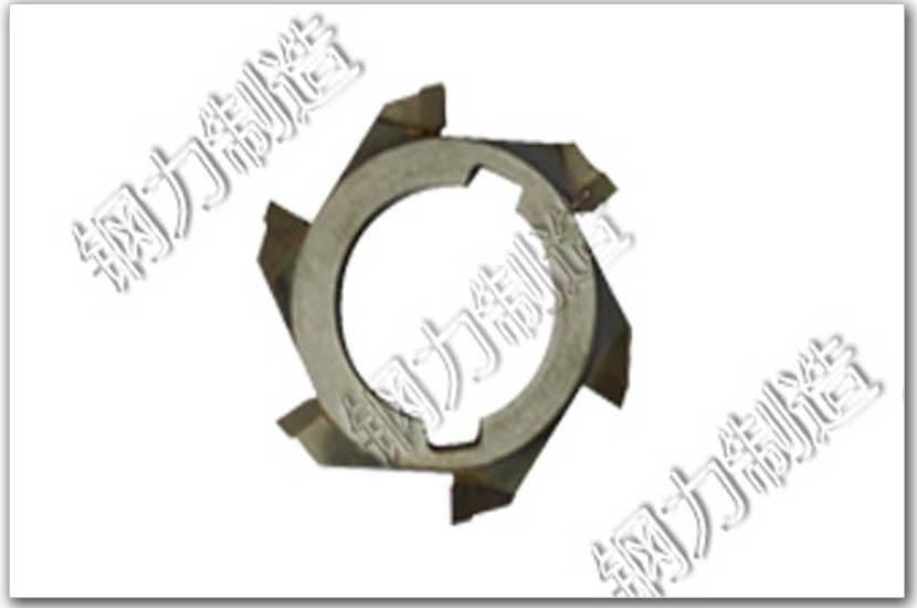 用普通材料作为刀体,硬质合金(钨钢)焊接在齿部。根据焊接的材质不同又分为三种。YG类,YT类,YW类三面刃。当然也可以做成直齿,错齿。